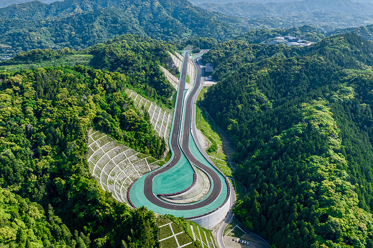 全長3.5kmのコースは、上り20%、下り16%の最大勾配、800mのストレート、22のコーナーを有し、安全性を確保しつつ、世界的にも類をみない高低差と複合コーナーを兼ね備えた唯一無二のレイアウトです。